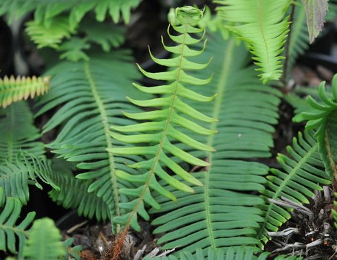 A reliable, hardy evergreen species of fern which grows from a central stock which will in time, grow to around 30 cms or so in height. It produces sterile fronds which may reach up to 40 cms long and will be borne from the crown of the plant and held very much vertical. The colour is deep green and remains untouched by harsh winter conditions. The fertile fronds are very attractive, they are deep green in colour  but emerge with a bronze hue with the spores on the reverse side.