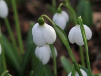 Broad rich-green foliage appears in late winter and medium sized bulbous flowers. A good reliable plant which multiplies quite quickly. Large white  almost spherical flowers with some degreen of puckering to the petals.