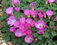 A reliable bulbous alpine plant which provides a profusion of flowers in summer. The leaves are the first to emerge in mid spring from the fibrous bulb, these are much divided and greyish green in colour arranged in a rounded compressed whorl type shape. The flowers are borne after the first leaves have opened, these are a from a pale to vibrant pink in colour. The flowers are broadly trumpet shaped with a wide mouth.